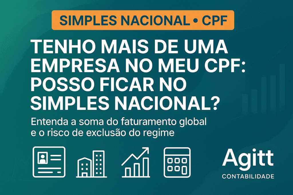 Quando você tem mais de uma empresa no seu CPF, o que importa não é apenas o faturamento de cada CNPJ isolado, mas sim a receita bruta global do grupo, somada conforme as regras da LC 123.